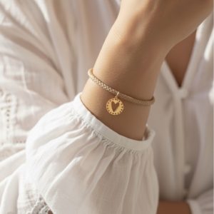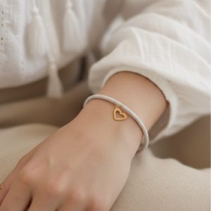 دستبند قلب با بند چرمی کد ۱